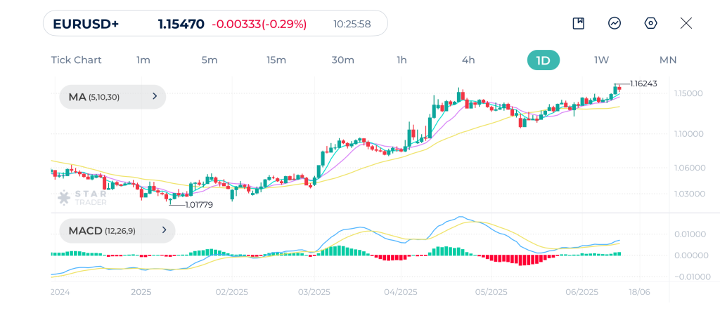 بعد أن وصل إلى أعلى مستوى له في أكثر من ثلاث سنوات، واجه زوج اليورو/الدولار الأمريكي بعض المقاومة عند مستوى 1.1600. ويتداول الزوج مجددًا عند مستوى 1.1500.