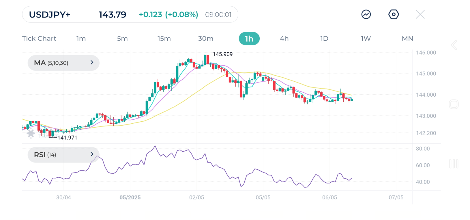USDJPY 1H Chart