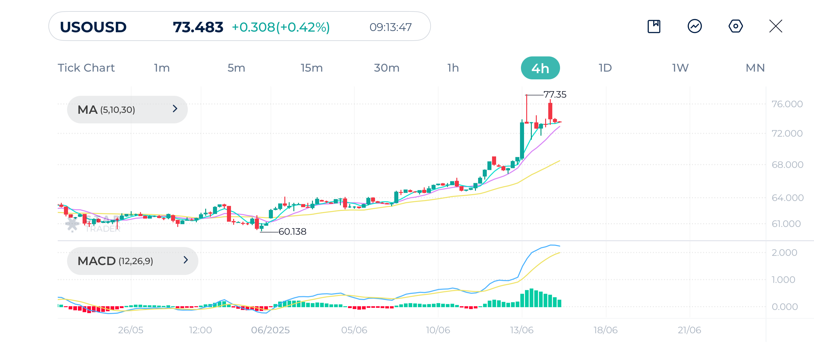 West Texas Intermediate (USOUSD) 4H Chart