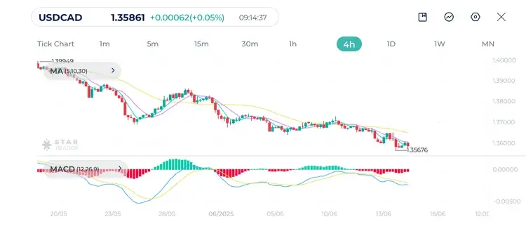 USDCAD is showing a sharp downtrend on the 4H chart as the pair fell to its lowest level since October 2024.