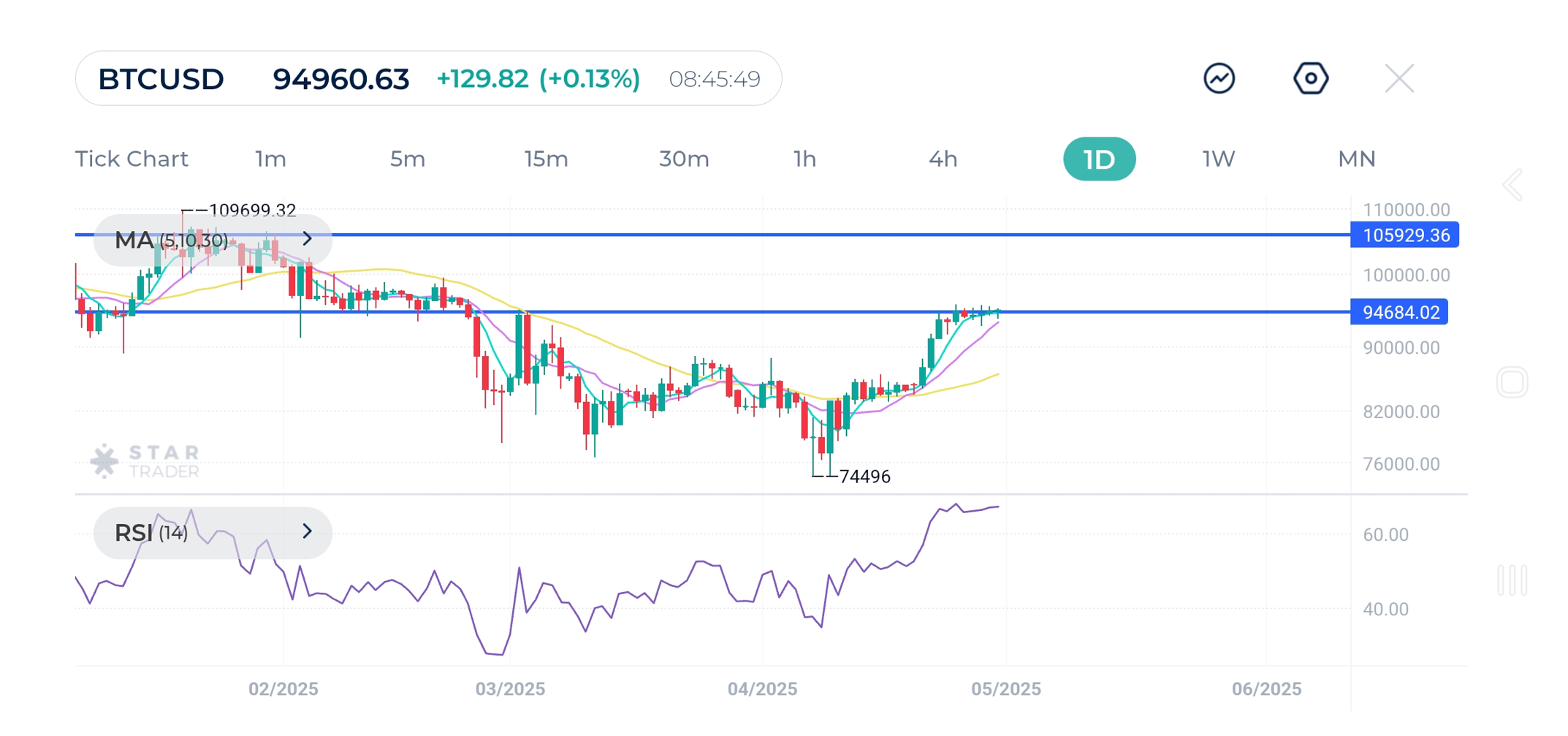 Bitcoin is facing major resistance level at $95,264 but it’s supported by the moving averages (5) and (10) in short term trading.