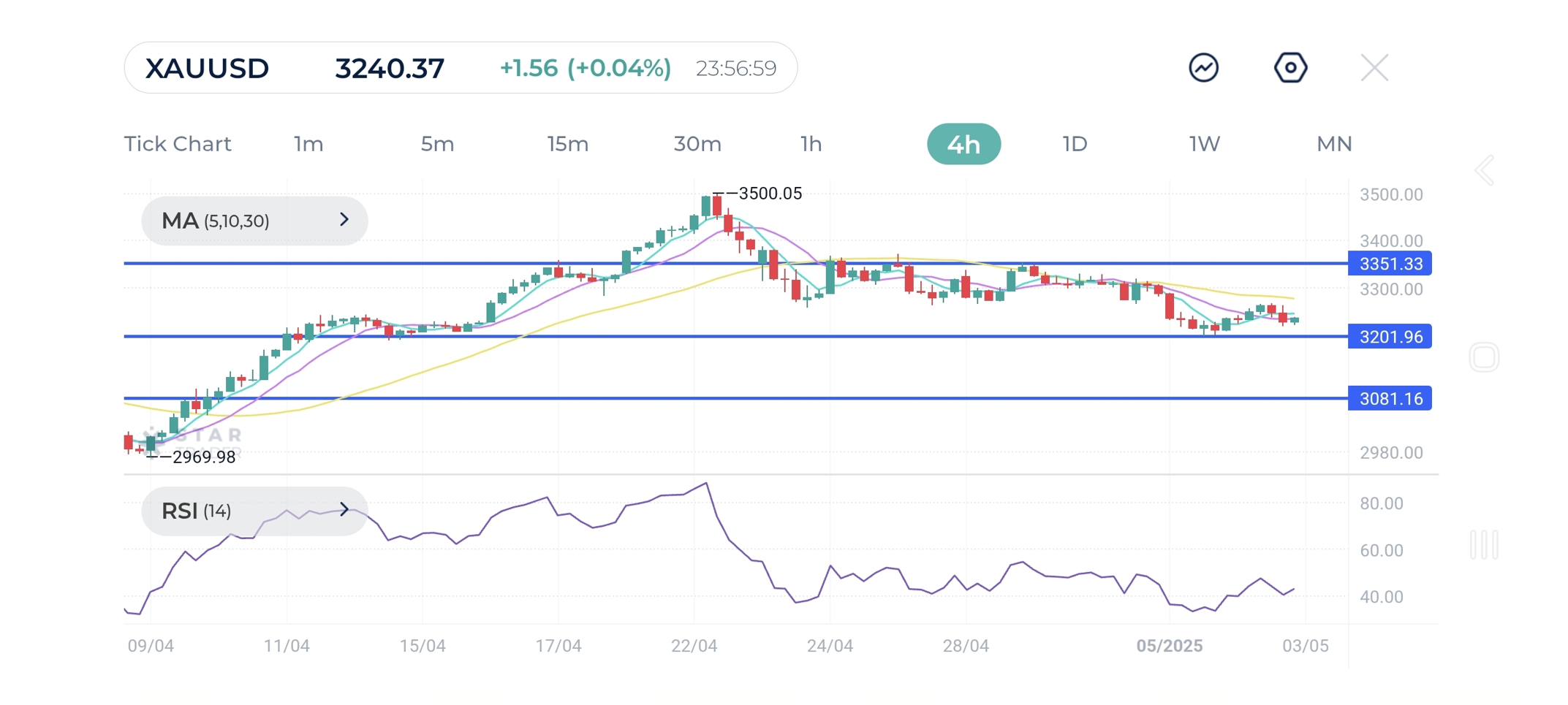 Gold found some support over the mid-April low of $3200, which could determine the next directional move. As long as price remains capped beneath $3350 from its latest failed bounce, the broader descending pattern remains valid. If bears regain control and drive the price back below $3200, it would reinforce the bearish structure, with attention shifting to $3080. However, a break above $3350 would trigger a short squeeze, and encourage fresh bullish momentum, opening the door for a potential rally toward $3500. The short-term bias remains cautiously bearish as previous medium-term buyers continue to take profit.