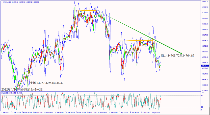 昨天(5日)美联储官员预期取消宽松政策,也让道琼斯和纳指反转下跌约2%。预期今天(6日)欧盟公布对俄罗斯扩大制裁,一旦俄罗斯宣布反制裁恐利淡欧洲经济,德指冲不过5日均线14,426,建议可偏空操作。预期周四(7日)清晨美联储因战事冲击经济对加息偏鸽,道琼斯冲不过5日均线34,773,建议可偏空操作。