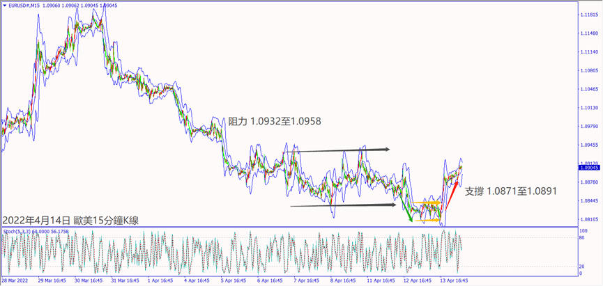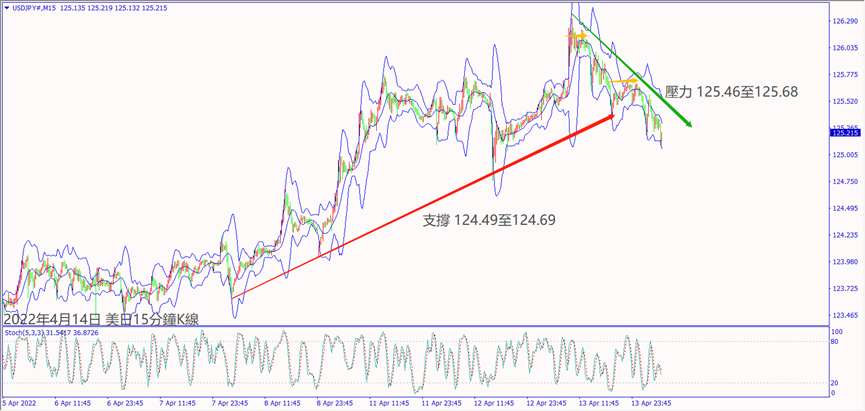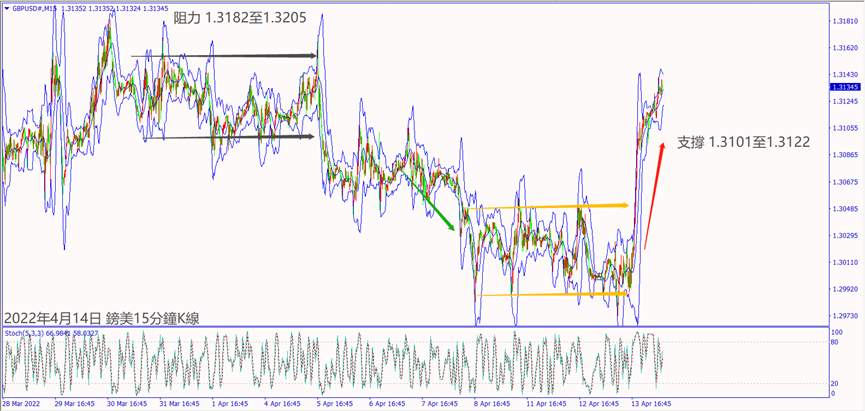 昨天(13日)美國疾控中心宣佈公共交通口罩令將延長2週表示新冠疫情再度升溫,今天(14日)早上美元指數跌至三天低點。預期今天歐洲央行利率決議對今年第三季度加息表示樂觀,有望帶動歐美和鎊美出現上漲。預期今天美國公佈零售銷售和消費者信心指數不佳,可能造成美元指數擴大下跌。