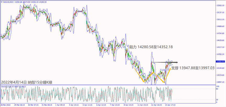 昨天(13日)加拿大央行行長對經濟增長表示樂觀,帶動道瓊斯和納指逆勢上漲逾1%。預期今天(14日)歐洲央行利率決議對今年第三季度加息表示樂觀,德指一旦跌破30日均線14,107,建議可偏空操作。預期俄烏戰爭和新冠疫情造成今天美國經濟數據大都不佳,納指沖不過60日均線143,111,建議可偏空操作。