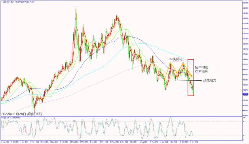 上週一(21日)沙特否認OPEC+增產報導,也讓美油價格逆勢飆漲近7%。上週二(22日)美聯儲梅斯特對加息表示放緩利好股指,推升美油價格沖高至82.00關口上方整理。上週三(23日)美國和歐盟預期公佈對俄羅斯採購石油上限低於市價,以及上週五(25日) 傳歐盟恢復對俄羅斯石油價格上限談判,造成美油價格反轉大跌超6%。