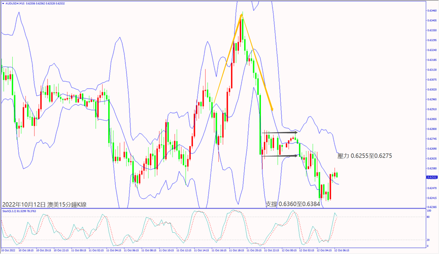 今天(12日)澳州聯儲助理主席表示澳大利亞中性利率可能至少為2.5%,暗指未來加息幅度放緩利淡澳元,澳美沖不過小時布林帶中軌0.6271,建議可短空操作。預期今天歐洲央行行長拉加德重申10月維持加息利好歐元,歐美若守住小時布林帶下軌線0.9669,建議可短多操作。預期週四(13日)清晨美聯儲貨幣會議紀要表示持續加息抑制通脹利好美元,鎊美沖不過小時布林帶中軌1.0985,建議可短空操作。