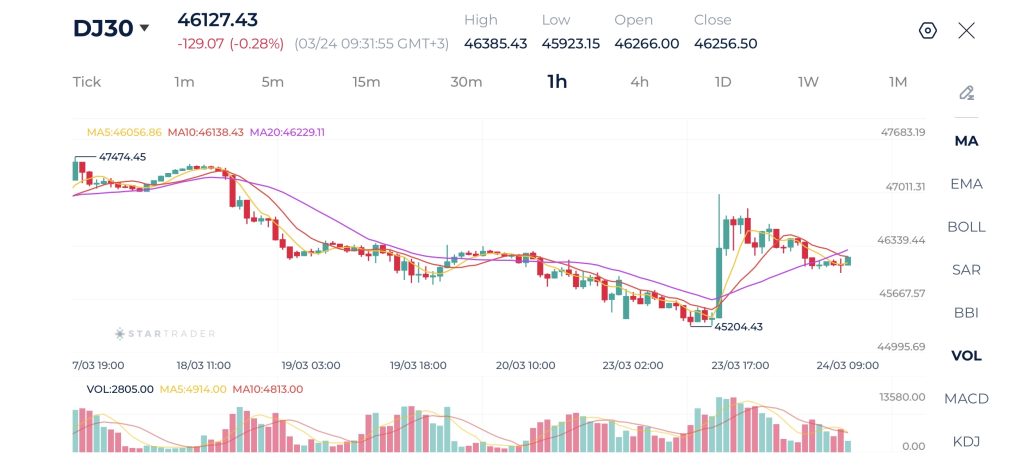 Biểu đồ Dow Jones khung 1H
